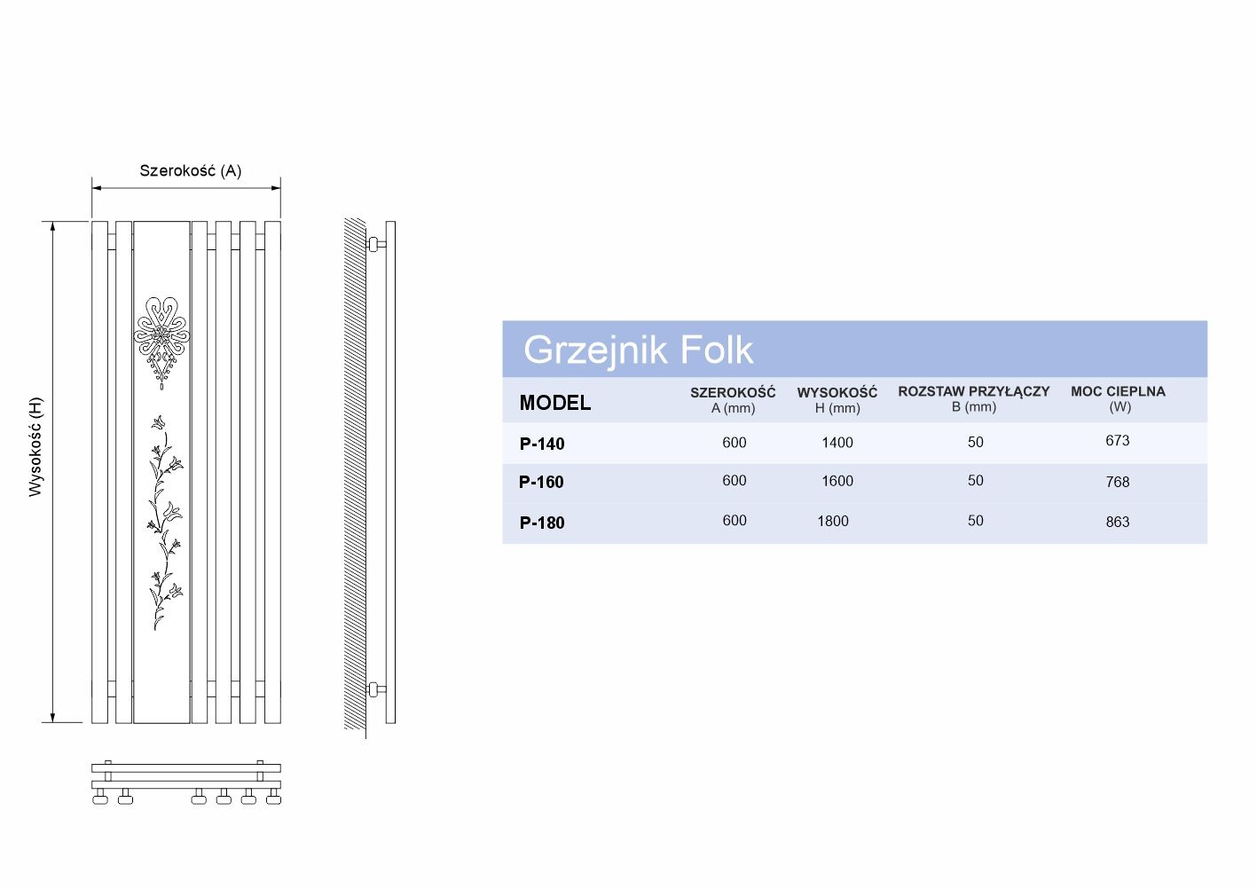 wysokość grzejnika flower